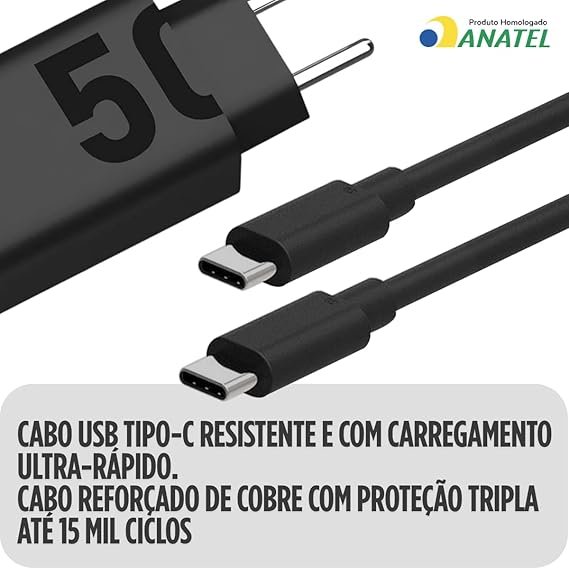 Um dos principais destaques do Carregador Super Turbo 50W Ultra Rápido é sua versão com portas Tipo C e USB. Essa combinação garante máxima flexibilidade, permitindo que você carregue múltiplos dispositivos simultaneamente. O cabo Tipo C incluído é altamente durável e perfeitamente adequado para qualquer aparelho com conexão Type-C, desde smartphones até tablets e gadgets modernos. Seu design universal o torna um dispositivo indispensável para quem busca praticidade e funcionalidade.